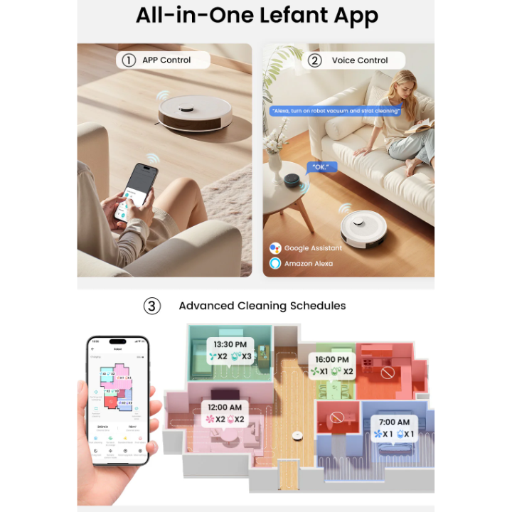 Accurately scans and maps your entire home for efficient, obstacle-free cleaning.