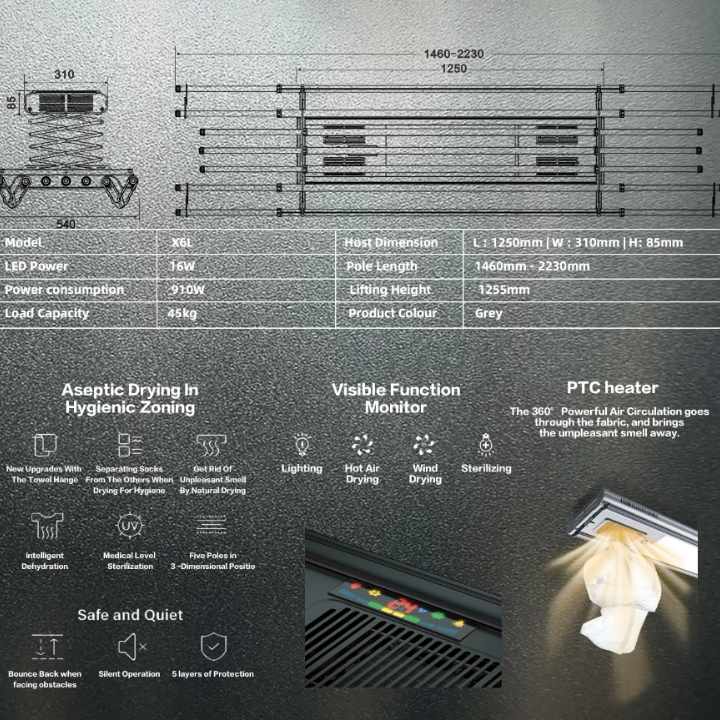 Dual rods support up to 45kg = 4 washing loads (36 clothes + 2 large bedsheets)