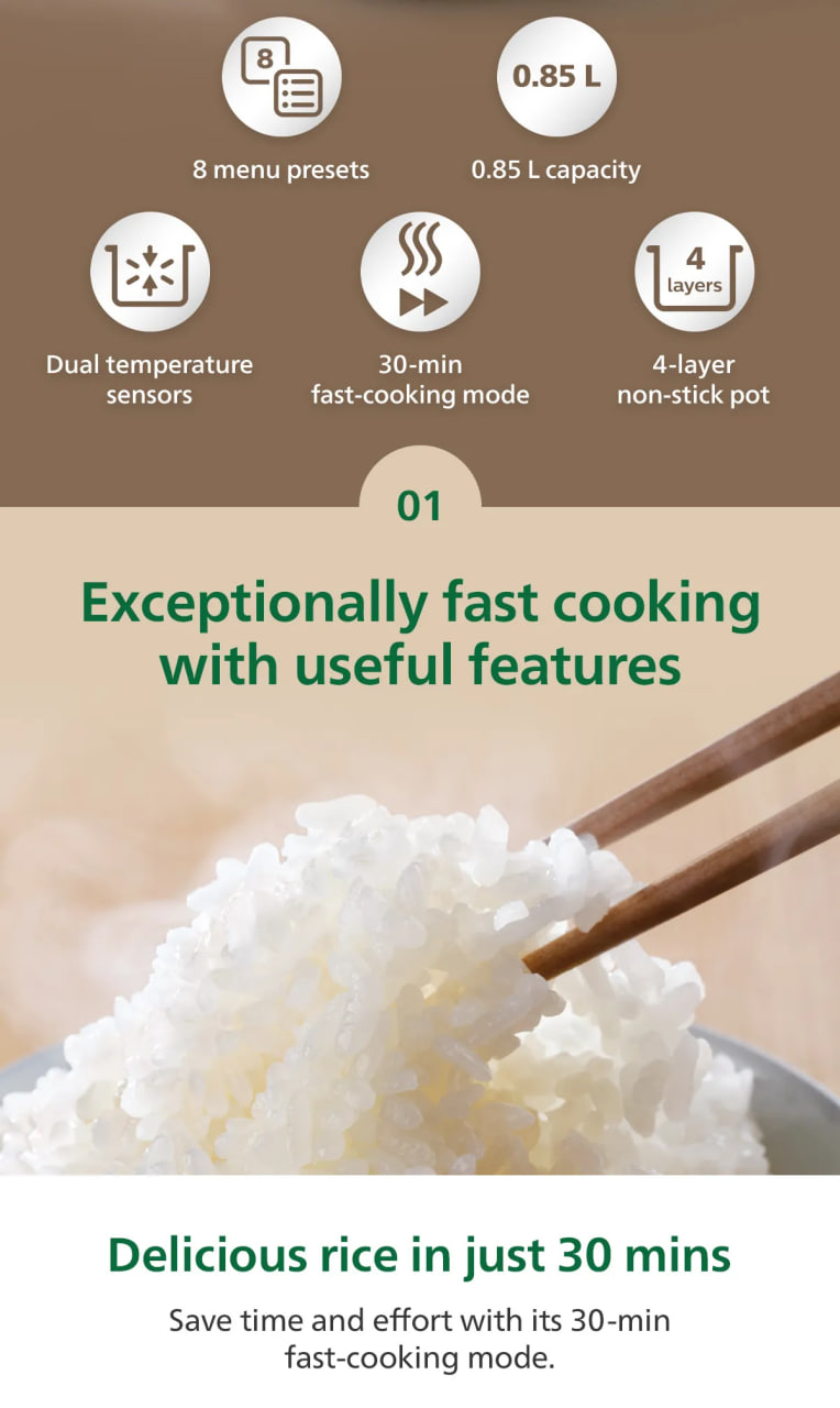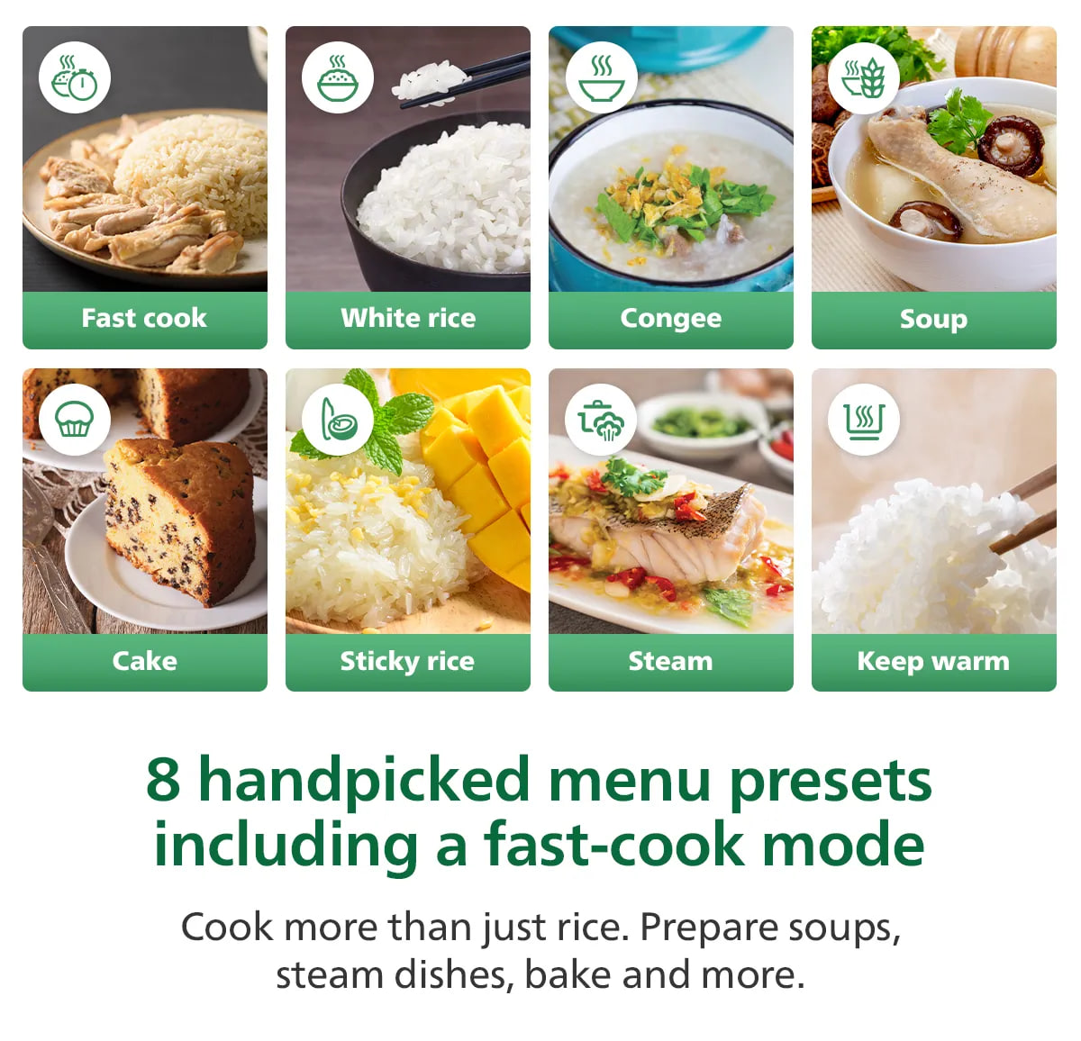 8 auto cooking menus with multiple-function for rice, dishes, soup and more features