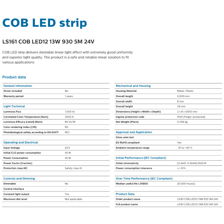Philips LS161 13W 24V COB LED strip/ Continuous no dot LED strip/ Cove light/ Cabinet Lighting