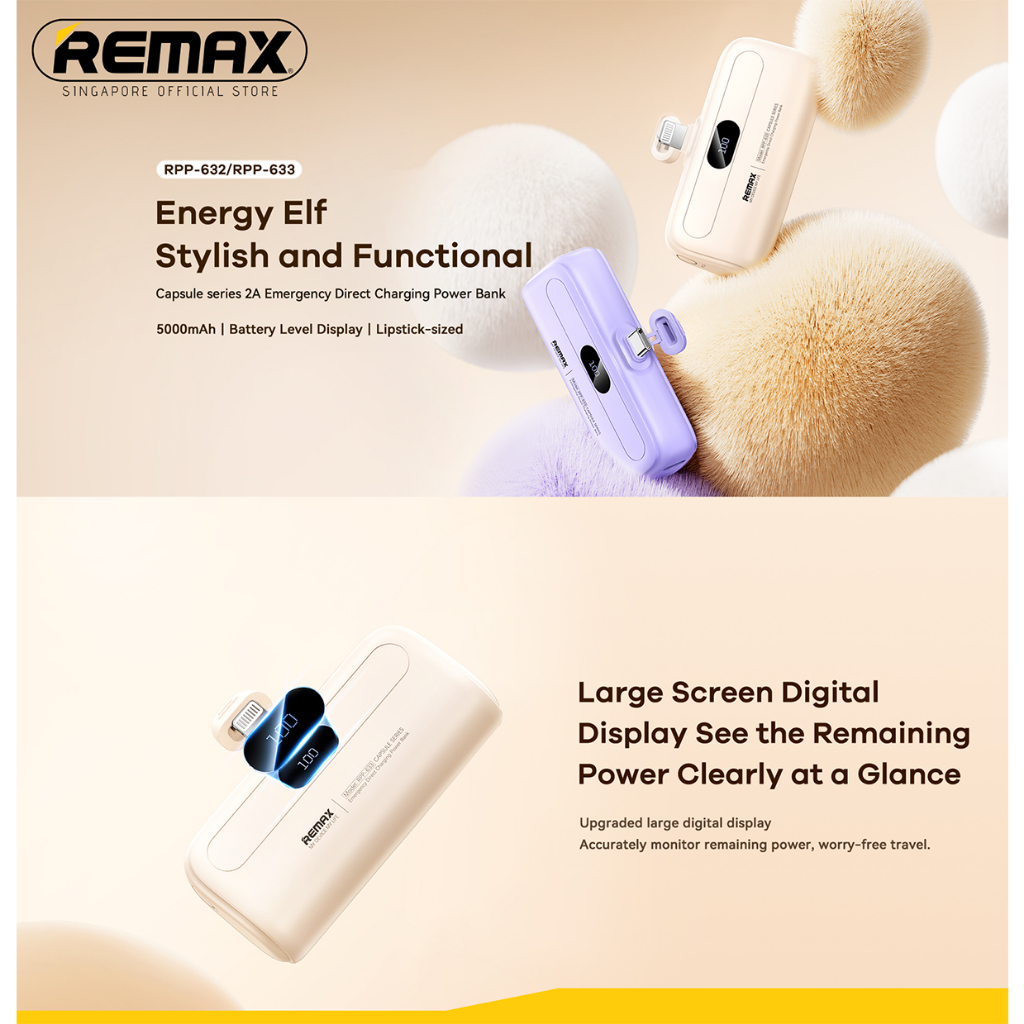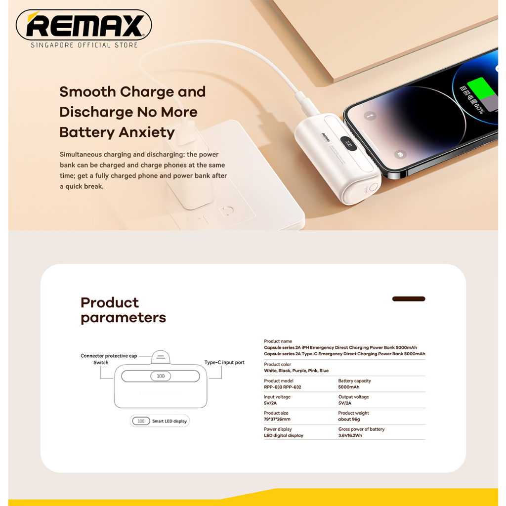 Remax RPP-632 Capsule Series 2A Type-C Emergency Direct Charging Mini Power Bank 5000mAh