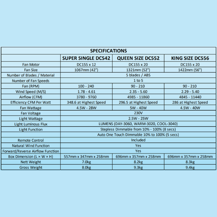 [2023/2024 Collection] Samaire 5 Blade Ceiling Fan 42" / 52" / 56" DC Ceiling Fan with Remote and Tri-Color LED